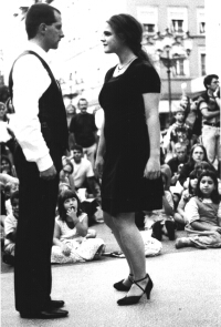 oder zum Canyengue. Die musikalische Vielfalt vergrössert sich, das Bandoneon etabliert sich zum typischen Intstrument und das Klavier verdrängt die bis anhin oft gespielte Flöte und die Gitrarre aus den Tango-Orchestern. Milonga und Tango-Milonga werden in Paartanzhaltung getanzt; die Haupttanzrichtung ist zur Seite in die Richtung der "gestreckten Arme". Gegen 1930 hin, nach dem Börsencrash von New York (1929), als es plötzlich weniger Arbeit gab und nach der Einführung des arbeitsfreien Samstag (1932), entwickelte sich die Tango Musik und der Tanz rasant. Die 30er und 40er Jahre gelten als das goldene Zeitalter des Tangos. Die Musik wird langsamer - zum Tango, die Lyrik klagender und die Tanzelemente werden vielseitiger. Die Haupttanzrichtung für den Mann wird ein Vorwärtsgehen und für die Frau ein vorwiegendes Rückwärtsgehen. Der dem Tango entsprechende Tanzstil heisst "Tango Orillero", die Grundlage des heutigen Paartanzes innerhalb des Tango Argentino.